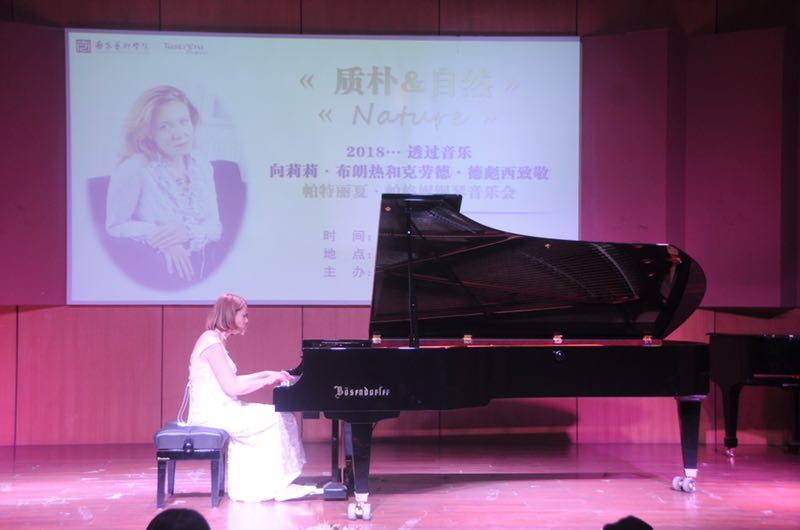 5月9日晚,太阳成集团122ccvip演奏厅座无虚席,应音乐教育系邀请来公司讲学的瑞士伯尔尼大学钢琴教授,帕特丽夏·帕格尼女士,举行了“2018...透过音乐向莉莉·布朗热和克劳德·德彪西致敬”的钢琴独奏音乐会,为全院师生带来了一场视听盛宴。成熟的演奏技巧,完美的音乐表现,令观众折服。当最后一首肖邦第二叙事曲演奏结束,全场观众爆发的热烈掌声和热情欢呼,让钢琴家再次返场加演,近2个小时的音乐会,引领全场观众畅游于每首钢琴作品的至美境界。