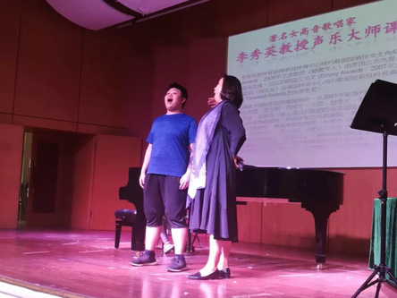 在大师课结束之后,李老师留了一些时间跟大家进行最后的声乐问题探讨,下面的师生也很积极地向李老师提出关于他们自己在声乐上的困惑,李老师也很耐心地一一为大家进行解答。最后李秀英老师专家课在大家依依不舍和热烈的掌声中圆满结束。