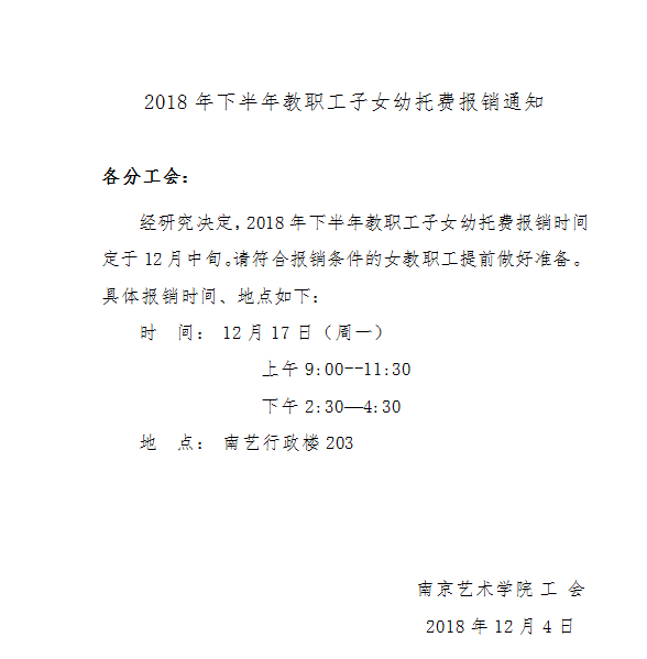 2018年下半年教职工子女幼托费报销通知