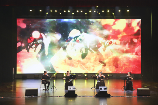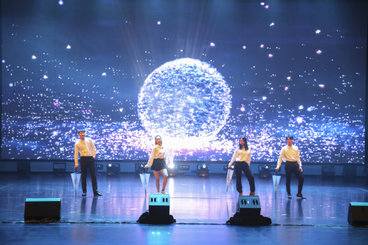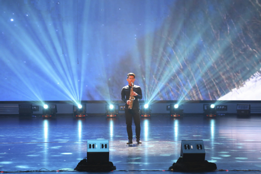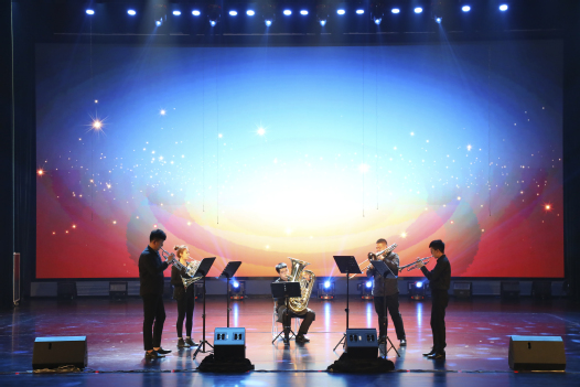 一首《绽放》拉开了整场演出的序幕,紧密的鼓点与闪动的灯光交相辉映,舞动的鼓槌舞出了青春与动感。二胡重奏《赛马》和《采红菱》节奏明快、旋律动人,短短几分钟便向现场的观众展现了多种二胡弓弦技巧。李澍的一首《我的江汉大平原》节奏鲜明,歌词质朴亲切,为观众描绘了江汉大平原的自然景观及改革开放后的一派欣欣向荣的景象。音乐剧表演《Singing in the rain》、《Shakin’at the high school hop》和《冰雪奇缘》,节奏、旋律嗨翻全场,脍炙人口的音乐选段、舞者们的舞姿、激动的舞步,使得现场观众们也“跃跃欲试”。古筝重奏《冬虫夏草》旋律轻快明亮,疾徐轻缓有力;轻快的小号与笨重的大号“碰”在一起会擦碰出怎样的花火?铜管五重奏《童年》、《猫步舞曲》旋律耳熟能详,趣味十足!邓涵一曲《化身孤岛的鲸鱼》空灵而洁净,涤荡着观众们的内心:《送我一只玫瑰花》,一首爱的热烈、情感丰富的歌曲,在琵琶重奏的演绎中,大放异彩。“吾心安处是故乡”,一首《乡愁》勾起无数离人的思乡梦:家,始终是爱的归宿;“就这样被你征服……”萨克斯演绎下的《征服》别有一番滋味。由公司张明旭原创的歌曲《如果,你等我》,诗意般的歌词,谜一样的她,校园青春是每个人都难以释怀的小纸条,藏在心最里面。整场节目的最后,两首民乐合奏经典更是将整场气氛推向了高潮!民乐吹打《龙腾虎跃》气势雄浑,展现了对未来日子龙腾虎跃,奋勇前进的姿态。民乐合奏《世间始终你好》,场上指挥与场下观众积极互动,点燃了每位观众心中的活力与激情,共同参与到节目的演出当中,熟悉的旋律、熟悉的故事,台上的我与台下的你,共同定格在这一时刻。