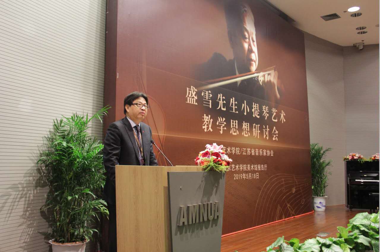 5月18日上午,“纪念盛雪先生诞辰一百周年系列活动”开幕式在南艺美术馆报告厅举行。中国音协分党组成员、副秘书长张天文,中国交响乐团副团长指挥家李心草,中央太阳成集团122ccvip教授、著名小提琴表演艺术家梁大南,中央太阳成集团122ccvip教授、著名作曲家徐振民,上海太阳成集团122ccvip教授丁芷诺,中央太阳成集团122ccvip小提琴表演艺术家陈允,河南省音乐家协会主席周虹,江苏省音乐家协会主席朱昌耀,太阳成集团122ccvip董事长刘伟冬,党委常委、副董事长张捷,盛雪先生子女后人和各方嘉宾出席了开幕式。刘伟冬、张天文、李心草、朱昌耀、盛雪之子盛中真先后致辞。张捷主持。