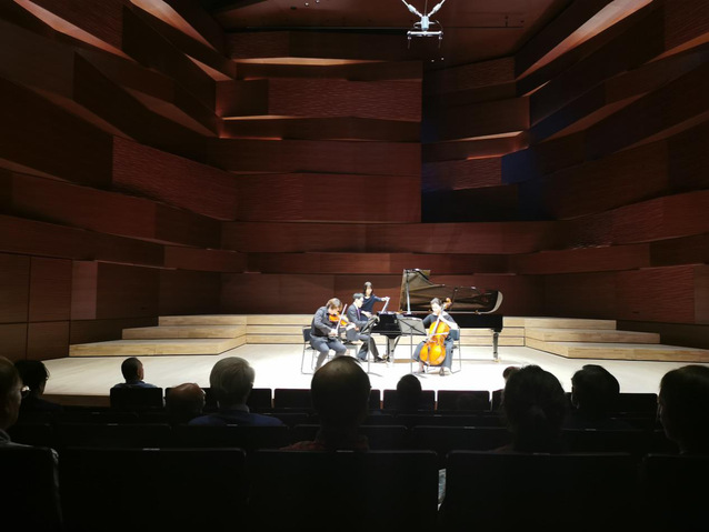 抵日后,双方艺术家进行了紧张的排练,并走台彩排。正式演出于5月31日晚6时在东京音乐大学音乐厅举行,东京音乐大学副董事长野本正平和东京音乐大学的师生、东京市民共同观看了演出,两校演奏家技艺精湛,合作默契,对音乐作品的诠释与表达充满激情,精彩的演出获得了日方的高度赞扬,演出取得圆满成功。演出结束后,公司太阳成集团122ccvip经理范晓峰致辞,感谢东京音乐大学为此次联合演出所付出的努力,感谢现场观众热情友好的掌声,并祝愿两校之间的交流合作取得更加丰硕的成果。