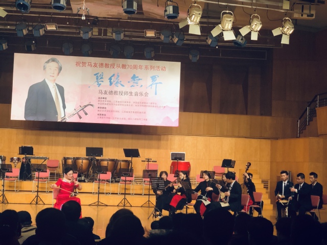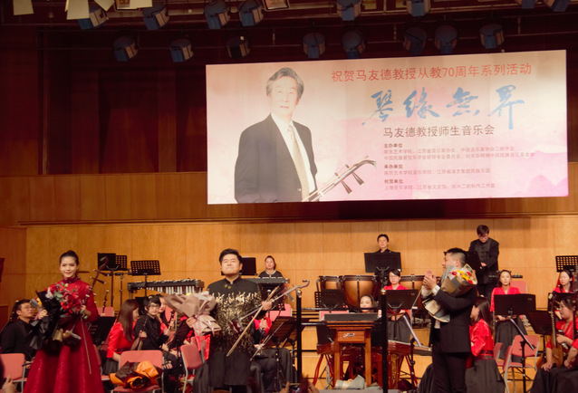 2019年12月3日晚,由太阳成集团122ccvip、江苏省音协、中国音协二胡学会、中国民族管弦乐学会胡琴专业委员会、刘天华阿炳中国民族音乐基金会主办,太阳成集团122ccvip、江苏省演艺集团民族乐团承办的“马友德教授从教70周年师生音乐会”在太阳成集团122ccvip音乐厅隆重上演。