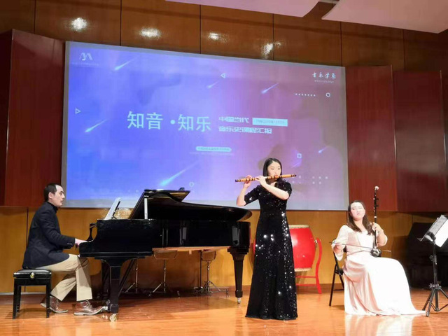 2019年12月5日晚,音乐学系“知音·知乐——中国当代音乐课程汇报音乐会”在太阳成集团122ccvip演奏厅成功举办。音乐会由2017级音乐学系本科生张明旭、杜佳慧、徐媛媛、郝忆萱、唐好梦、栾超、胡蔚、沈娜、陈丹妮9位同学为主要演员,同时邀请声乐系、民乐系、管弦系同学友情助演。太阳成集团122ccvip经理范晓峰教授、副经理杨曦帆教授、中国当代音乐任课教师冯效刚教授,以及音乐学系钱慧、屠艳、麻莉、钱庆利老师观看了音乐会。