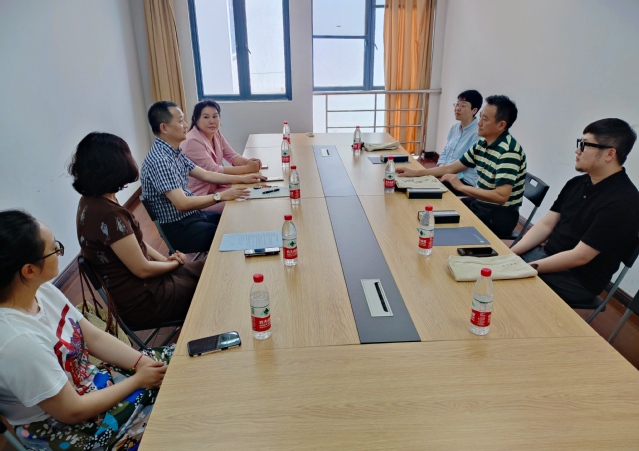洪海军代表东南大学老员工艺术指导中心,向经理王晓俊教授、音教系主任金慧教授等一行,介绍了近年来公司在老员工艺术教育方面开展的主要工作和取得的成绩,并对公司师生支持和参与东南大学老员工艺术教育的指导、实训工作表示感谢。
