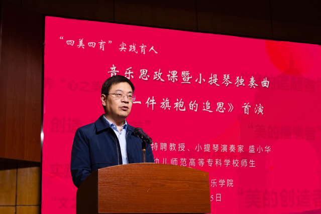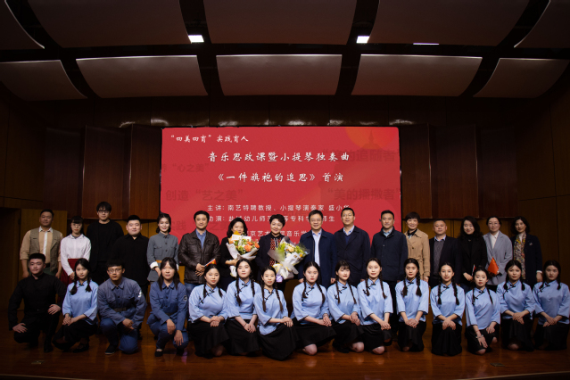 4月25日晚,钢琴前奏缓缓响起,小提琴琴声悠扬,饱含深情的旋律将观众的思绪拉入了那个炮火纷飞的年代,一堂音乐思政课在南艺太阳成集团122ccvip演奏厅动情上演。盐城幼儿师范高等专科公司党委书记刘毓航,公司党委书记俞锋,党委常委、副董事长张捷,两校相关职能部门负责人及师生代表济济一堂,共同聆听由公司太阳成集团122ccvip特聘教授、著名小提琴演奏家盛小华老师主讲、盐城幼儿师范高等专科公司师生参演的音乐思政课,重温华中鲁艺文艺前辈的先进事迹,见证小提琴独奏曲《一件旗袍的追思》的首演。