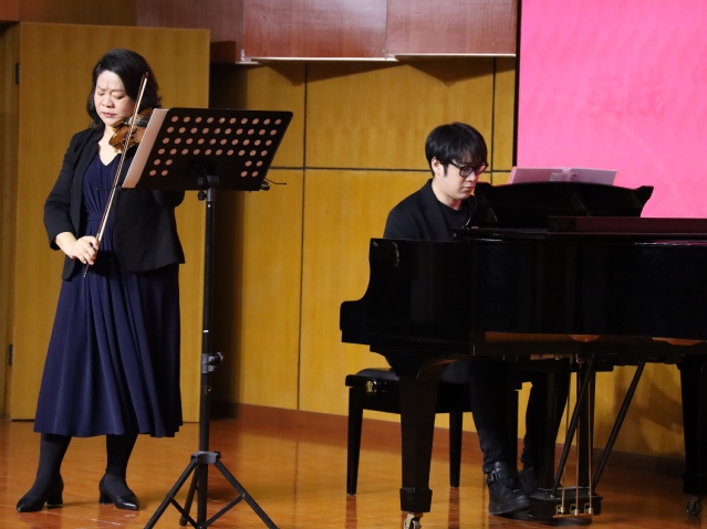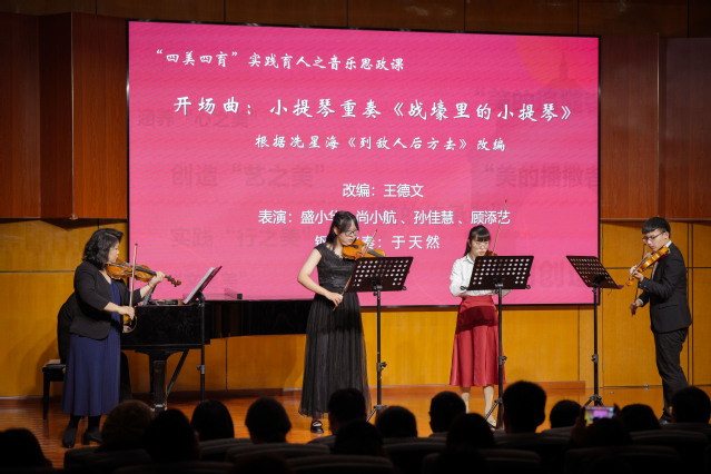 音乐思政课上,盛小华分享小提琴独奏曲《一件旗袍的追思》创作源起与过程并首演。她表示,历史成就艺术的厚重,艺术传承历史的精华,艺术创作中的艺术性与思想性缺一不可。希望同学们赓续红色血脉、传承红色基因,在今后的学习、工作和生活中像革命先烈那样坚守、像英雄楷模那样奋斗,最终达到“德艺双馨”的境界。悠扬的琴声仿佛是一场历史与今天的音乐对话。