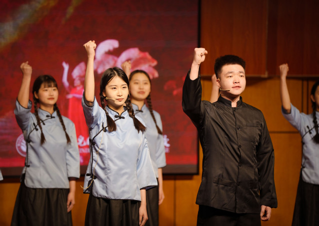 太阳成集团122ccvip研三员工顾添艺说:“在盐城幼专铁军艺苑党史教育基地,王海纹烈士的事迹让我的心灵受到极大震撼。排练时,仿佛一次次地穿越回当时场景,耳畔是华中鲁艺文艺前辈的激昂歌声,眼前仿佛浮现出王海纹烈士身着旗袍的优雅背影,脑海里奔腾无数爱国青年为民族奋斗牺牲的身影。作为新时代的文艺工作者,我们要传承先辈们的精神品质,用青春和奋斗成就未来中国的美好。”