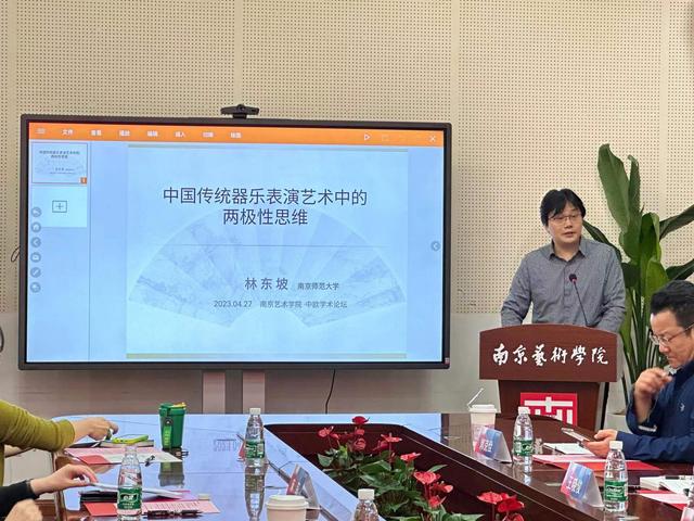 南京师范大学美育中心主任、博士生导师林东坡教授发表题为《传统器乐表演艺术中的两极性思维》的报告,对两极思维结合阴阳、二元相应等理论在音乐表演当中的理论原型进行详细阐述,提出的两极震荡的概念、以及人声、气声分类对于进一步理解中国音乐表演传统有重要作用。