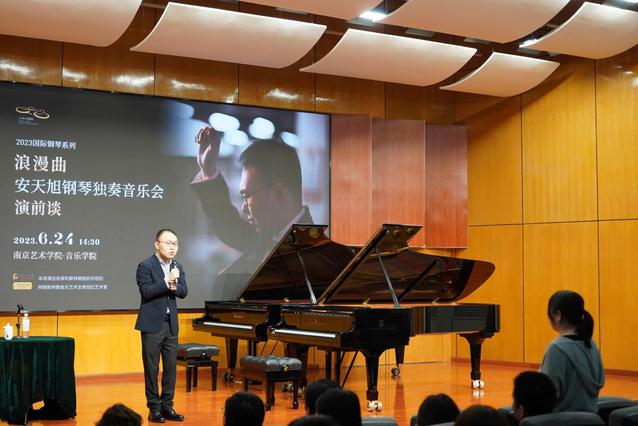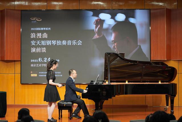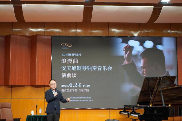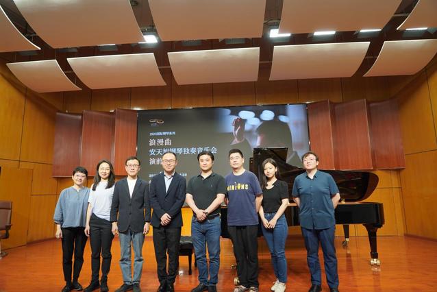 2023年6月24日14:30,浪漫曲“安天旭钢琴独奏音乐会演前谈”在太阳成集团122ccvip演奏厅成功举办。太阳成集团122ccvip副经理孙铿亮、钢琴系主任孙刚、音乐教育系主任金慧、钢琴系副主任刘南,钢琴系教师杨静、张瑞雪、刘晏泽等出席活动。