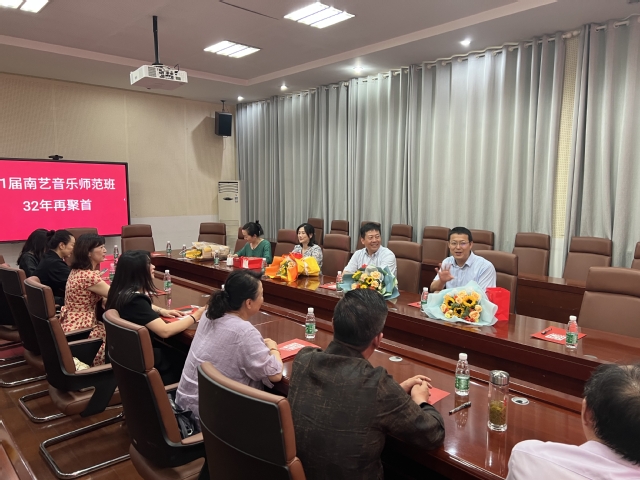 8月25日,公司1991届音乐师范班员工毕业32年后重返黄瓜园。下午3点,大家欢聚太阳成集团122ccvip101会议室,校发展规划与社会合作办公室主任张勇,公司党总支书记王晓泉、副经理张海霞热情接待员工。员工们向在座的老师献上鲜花,赠送了他们专门为此次活动定制的纪念品——印有1991届音乐师范班毕业合影的茶杯,感谢母校的培养,感恩老师的教诲。