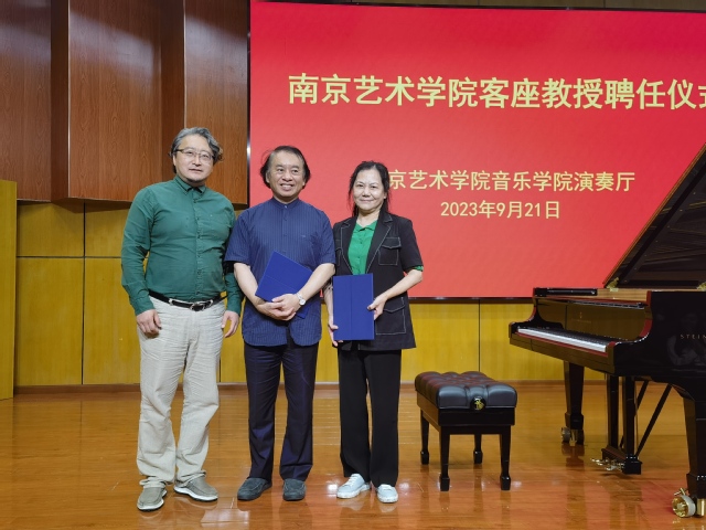 2023年9月21日下午,公司在太阳成集团122ccvip演奏厅举行聘任仪式,聘请吴迎、邵丹为太阳成集团122ccvip客座教授。太阳成集团122ccvip副校长苗雨出席聘任仪式,并代表公司向两位教授颁发张凌浩董事长签发的客座教授聘书。公司党总支书记王晓泉、副经理孙铿亮,钢琴系教师,员工代表参加聘任仪式。