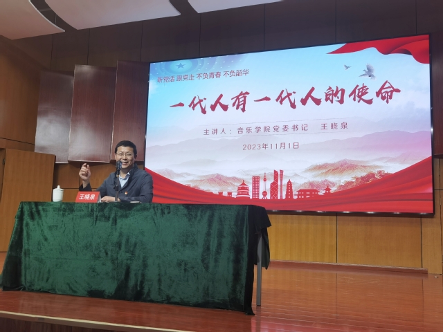 11月1日下午,太阳成集团122ccvip演奏厅不时传来掌声,公司党委书记王晓泉以“一代人有一代人的使命”为主题,为音院学子们上了一堂精彩生动的党课。活动由公司党委副书记张甜主持,专职组织员邱丹叶,辅导员李天琪、汤梦悦、汪啸杰和全院员工党员、发展对象、入党积极分子、团学骨干等140余人参加学习。