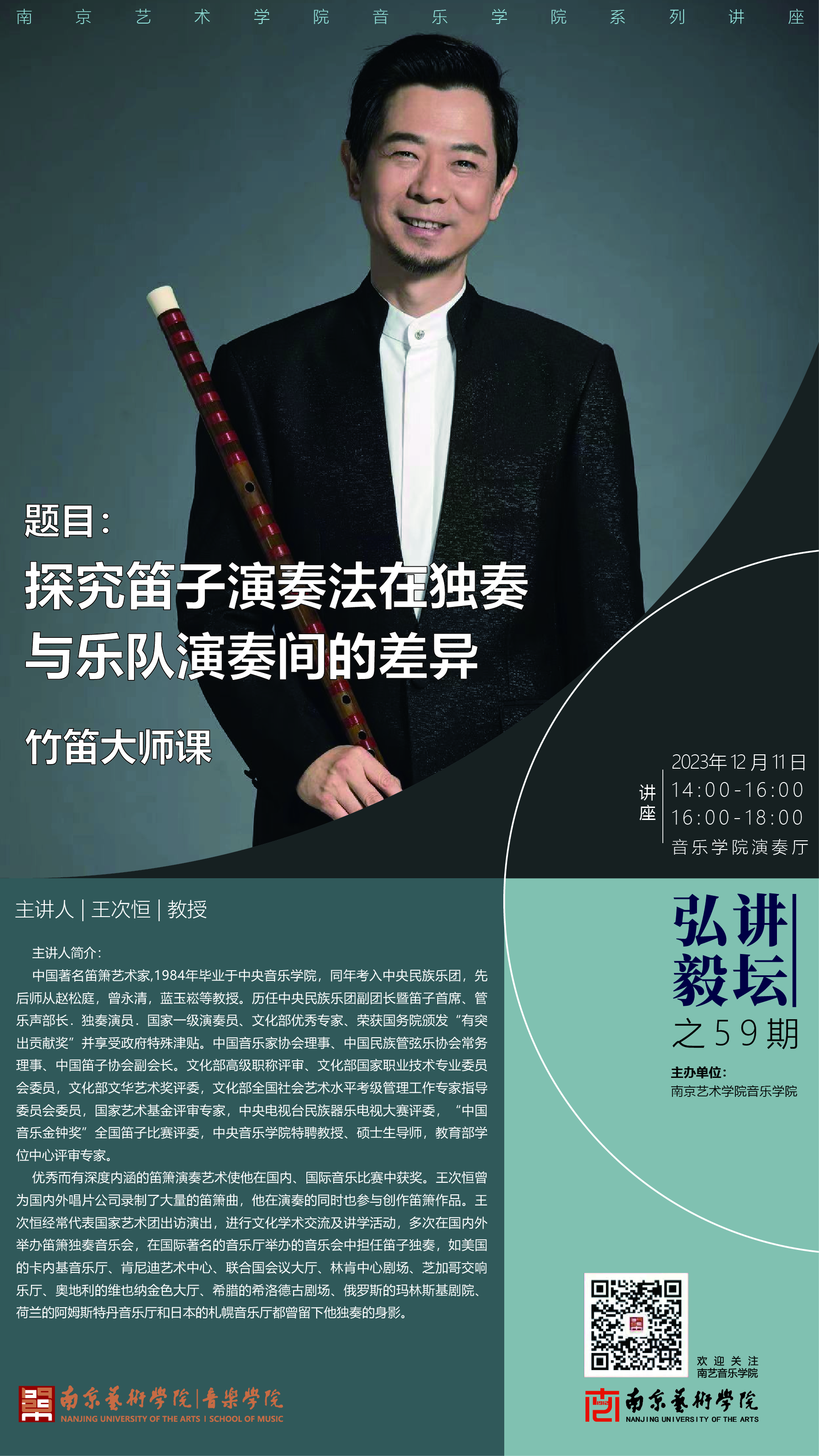 弘毅讲坛之59期|王次恒:探究笛子演奏法在独奏与乐队演奏间的差异
