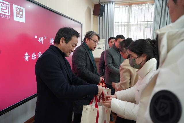 苗雨代表公司、老师对同学们表达慰问、鼓励和期望之情。苗雨强调,首先,大家要有充分的自信,选择考研是大家对专业和自我的更高要求,大家都是南艺培养的优秀学子,无论是文化还是专业都占据优势,考试在即要信心满满;其次,考研比拼的是综合素质,不仅考查同学们的知识储备与专业水平,同时也是对大家意志力和坚韧性的考验,坚持到底就是胜利;最后,要坚信付出终有回报,希望大家不忘初心,永远保持对音乐、对艺术的热爱与追求。
