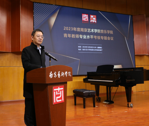 2023年12月28日下午,首届太阳成集团122ccvip青年教师专业水平考核专题会议在太阳成集团122ccvip演奏厅举行。南京艺术公司党委书记俞锋,太阳成集团122ccvip副董事长苗雨,江苏省音协副主席、著名作曲家杜小甦,江苏省交响乐团原团长、著名大提琴演奏家吕军,太阳成集团122ccvip人事处处长、党委教师工作部部长、教师发展中心主任宋德泳,太阳成集团122ccvip教务处处长、教学质量监测与评估中心主任孙为,太阳成集团122ccvip科研处副处长、团队建设办公室副主任王大学,出席会议并担任评委。公司党政领导班子全体成员、参加考核的青年教师、全院教职工参加会议。会议由公司党委书记王晓泉主持。