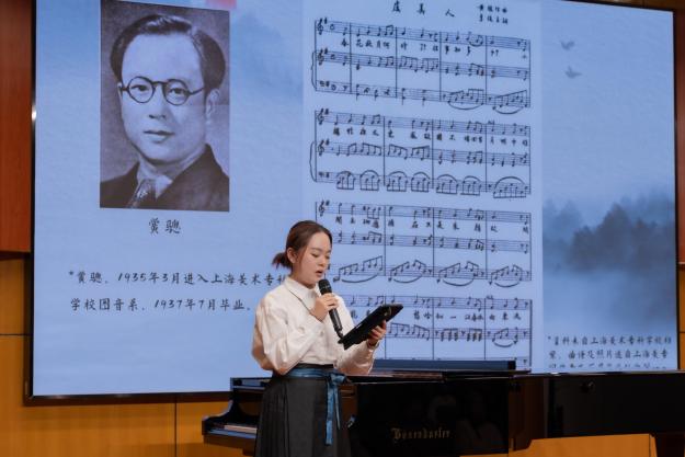 音乐会以合唱2首创作于近百年前的艺术歌曲为压轴节目,它们是音乐学师生团队在校史研究过程中发现的上海美专毕业生作品。曲作者黄骢和曾荣水是上海美专图音科和音乐系的员工。通过这门协作课和这场音乐会,师生们完成了一次与100年前的员工和1000年前的宋人跨越时空的对话。