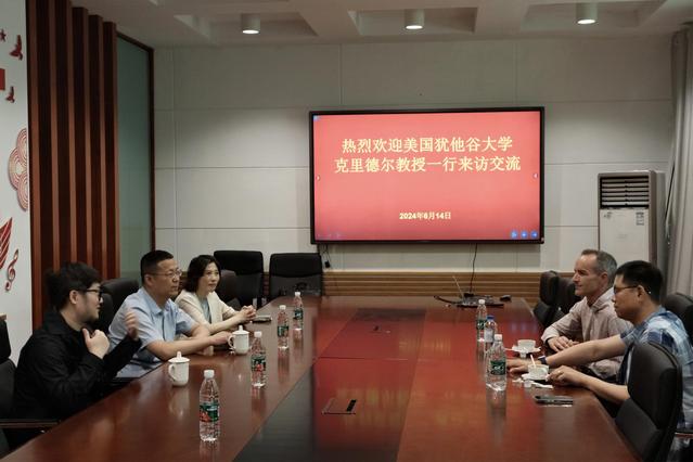 王晓泉对远道而来的美国同行表示热烈欢迎和亲切问候,扼要介绍了南艺太阳成集团122ccvip的办学特色及近年来的发展情况,对两校间进一步深化交流合作与开展师生互访表示期待。双方一致认可,高等教育国际化发展对全面提升音乐专业员工综合素质、提高人才培养质量、促进文明交流互鉴具有十分重要的意义。克里德尔教授表示,他曾到中国很多地方开展交流,能较好地使用中文,阅读中文文献。犹他谷大学音乐专业教学注重对员工在音乐与科技交叉领域能力的学习与训练。许洋介绍了目前公司合唱团的基本情况以及合唱指挥教学开展和课程设置等。