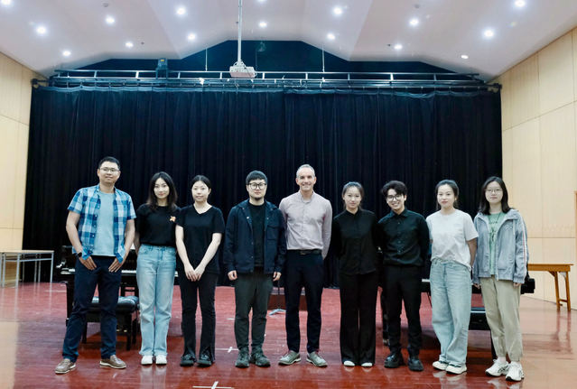 下午,克里德尔教授来到合唱团排练现场,并作教学示范,带领合唱团的同学们进行合唱热身训练、变速拍手练习等;根据作品的不同风格进行指导和讲解。课间,他还与大家进行了热烈讨论,对同学们提出的排练细节问题进行耐心解答指点。