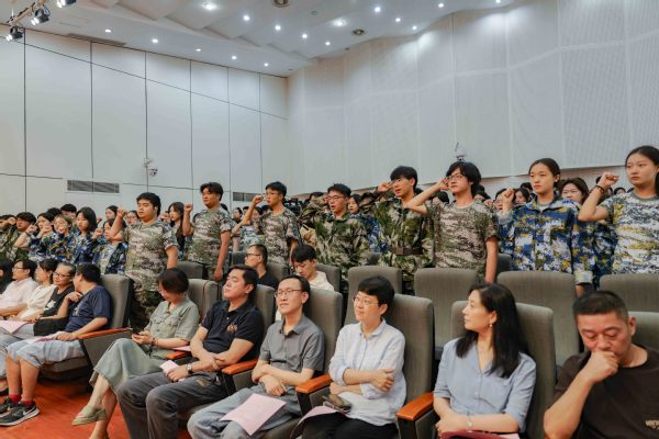 紧接着,2024级全体新生在四位领誓同学的带领下,举起右拳,进行庄严宣誓。一字一句,铿锵有力,掷地有声,承载了全体新生对即将开始的新生活的期望与承诺。