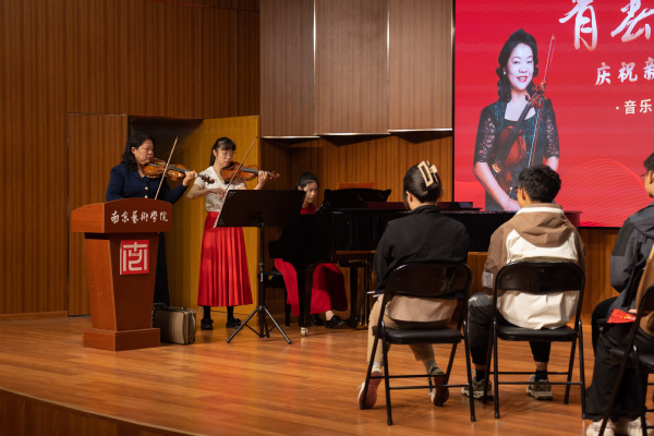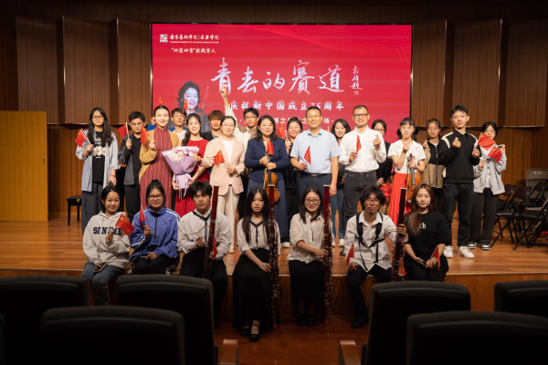 王晓泉在活动结束之际讲话,感谢盛小华教授为同学们精心打造了这场独一无二的国庆记忆。他深情赞扬盛氏小提琴家族三代人用艺术报国的赤子情怀,盛老师“青春的赛道”音乐思政课已形成重要品牌影响力。他特别提到29日刚刚在京受到表彰的国家勋章和国家荣誉称号获得者,引导同学们学习科学家、教育家等英雄模范的爱国精神,以人民艺术家为榜样,坚守对音乐的热爱,永葆爱国之心与赤子之情。同学们倍受鼓舞,纷纷表示盛小华教授带给他们的不仅是音乐的优美旋律,还有老一辈艺术家的爱国情怀,这些都将激励他们深入感悟民族音乐文化的丰富内涵,努力成长为担当民族复兴大任的时代新人。