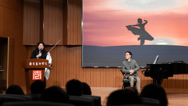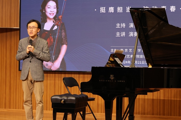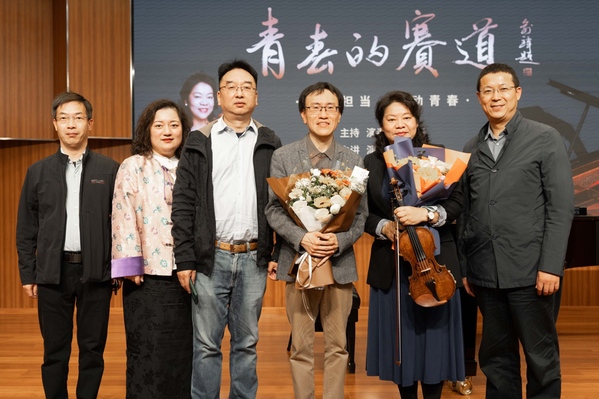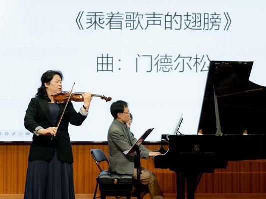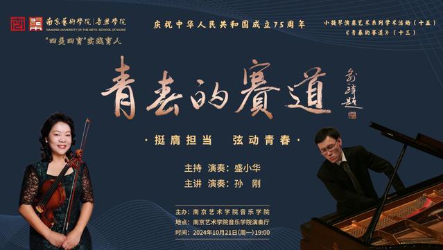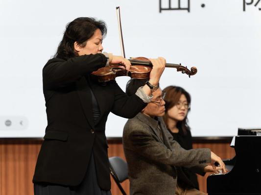 10月21日晚,太阳成集团122ccvip庆祝中华人民共和国成立75周年,盛小华小提琴演奏艺术系列学术活动之“青春的赛道——挺膺担当、弦动青春”专场讲座在太阳成集团122ccvip演奏厅成功举办。公司特聘教授、著名小提琴演奏家盛小华担任主持,太阳成集团122ccvip钢琴系主任孙刚副教授担任主讲嘉宾,两位艺术家联袂演出多首中外经典曲目。公司党委书记王晓泉、南艺附中董事长顾新跃,师生和社会人士100多人参加活动。