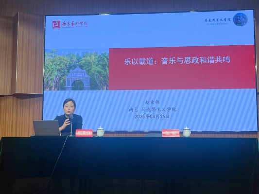 赵素锦列举大量实例,从教学内容、理论授课及实践展演等三个方面对音乐融入课程思政的路径提出积极建议。在音乐作品选择上,富有时代价值和文化意义的作品很多,可通过直接选用、改编演绎和主题原创等方式,使其承载思政教育功能;在理论授课中,赏析具有伟大建党精神、中华优秀传统文化、社会主义先进文化等主题的作品,深入探讨音乐家、音乐事件、音乐流派对社会发展的影响,能够让员工在潜移默化中接受思政教育的洗礼;在实践展演环节,探索“音乐+思政”融合路径,同学们在社会公益演出等舞台上增强本领,用音乐传递思政力量,担当社会责任,厚植家国情怀。