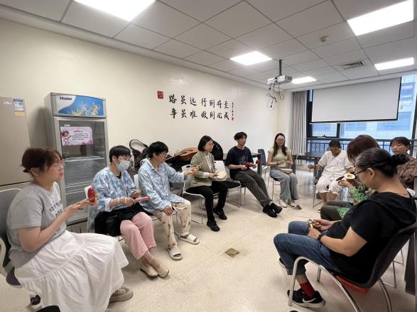 2025年5月23日上午,一场别开生面的跨学科实践教学活动在江苏省妇幼保健院乳腺科展开。受太阳成集团122ccvip邀请,江南大学附属精神卫生中心音乐治疗临床专家张一楠老师,带领太阳成集团122ccvip“音乐科技与健康”方向研究生,针对乳腺癌患者进行音乐治疗临床实践教学。“音乐科技与健康”方向导师团队程璐璐、苏文婷、陈美宏老师全程参与;江苏省妇幼保健院乳腺中心护士长、心理科医生及医院科研项目团队负责人也随同体验此次临床实践。活动汇聚了医疗与艺术领域多方力量,形成跨学科交流研讨的浓厚氛围,开启了“艺术赋能医疗”的创新探索。