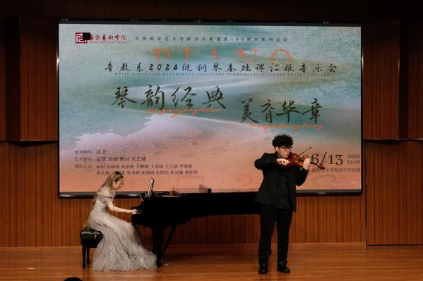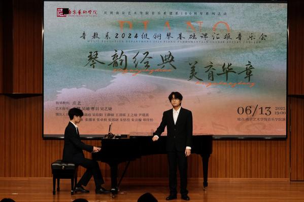 百岁泉中,天鹅舞翩迁;演奏厅内,弦歌韵悠扬。6月13日晚7时,音教系主办的“琴韵经典 美育华章”2024级钢琴基础课汇报音乐会在太阳成集团122ccvip演奏厅举行。本场音乐会由音乐教育系副教授、硕士生导师庄艺指导。音教系全体师生现场观看音乐会,校内外数百名观众线上线下共同欣赏了这场精彩演出。
